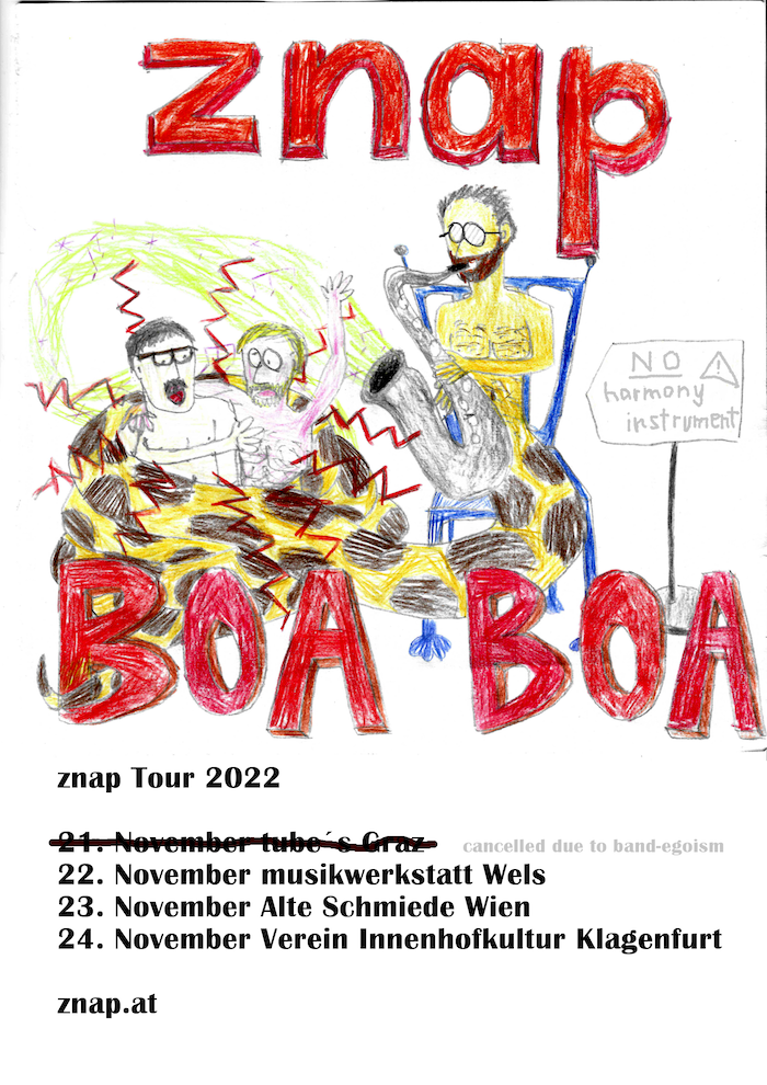 Mit dem Herbstbeginn kommen einige spannende Konzerte und Projekte: wir releasen mit AHL6 am 19.09.24 das dritte Studioalbum namens "What happened to Eternity?" auf Waschsalon Records (Cover siehe unten) und spielen am Tag davor ein Album Release Konzert im Porgy&Bess Wien! Eine Woche darauf geht es dann mit dem Wednesday Night Prayer Orchestra weiter in die neue Saison, die bis kurz vor Weihnachten geht (Termin unter LIVE). Im Oktober werden wir mit znap auch mal wieder "extended" mit Verstärkung durch Silke Eberhard, Lorenz Raab und Martin Bayer auftreten. Freu mich schon sehr auf all das und hoff, ihr seid bei dem ein oder anderen Konzert dabei!